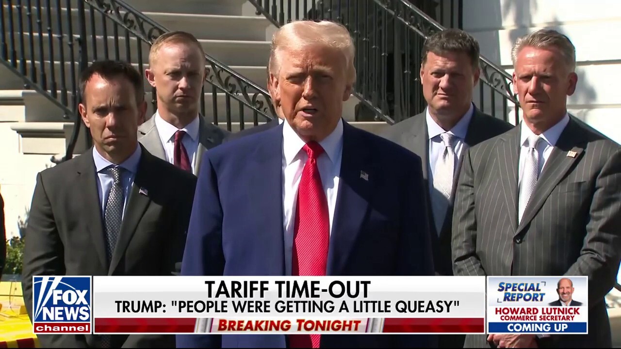 當地時間9日下午,特朗普宣佈對部分國家暫緩徵收“對等關税”90天 福克斯新聞台截圖