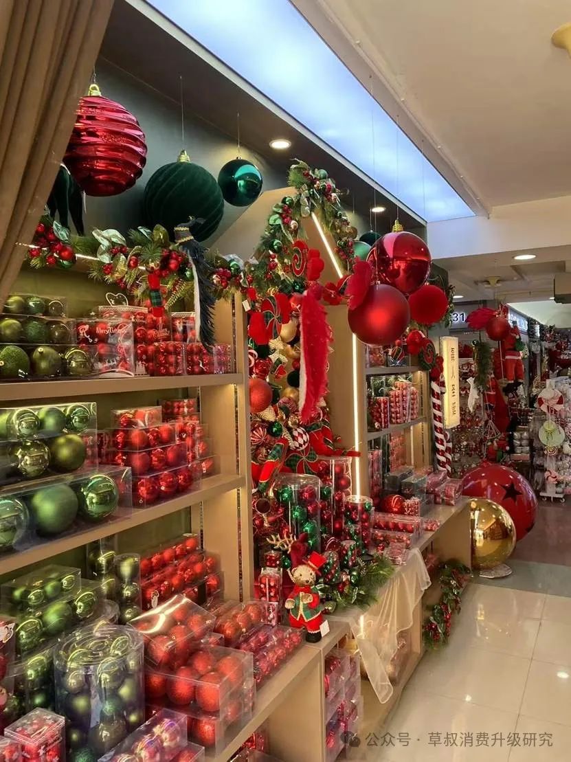 下圖為E店,賣聖誕用品的。2025年聖誕用品的發貨,4月份這會兒就開始準備了,海運還要好幾個月,到那邊後還需要時間賣。世界上99%的聖誕用品,都從義烏髮出。