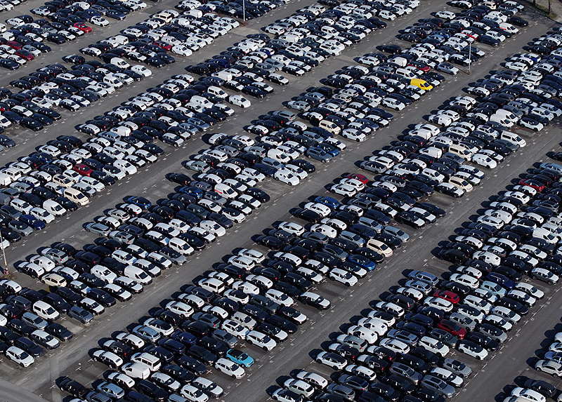 當地時間4月9日,德國埃森,一直未售出的新車停放在物流中心的停車場。依賴出口的德國汽車工業正面臨着不確定性,因為歐盟與之間的關税爭端正在升級。 視覺中國