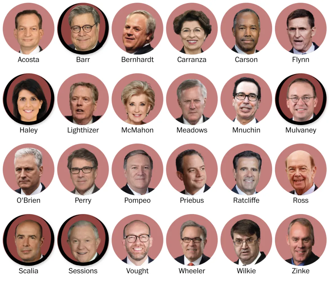 特朗普1.0內閣中沒有表態是否支持他競選連任的15人,但其中很多人曾經公開批評他 《華盛頓郵報》
