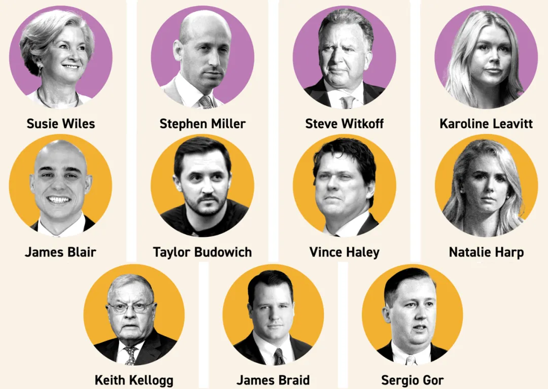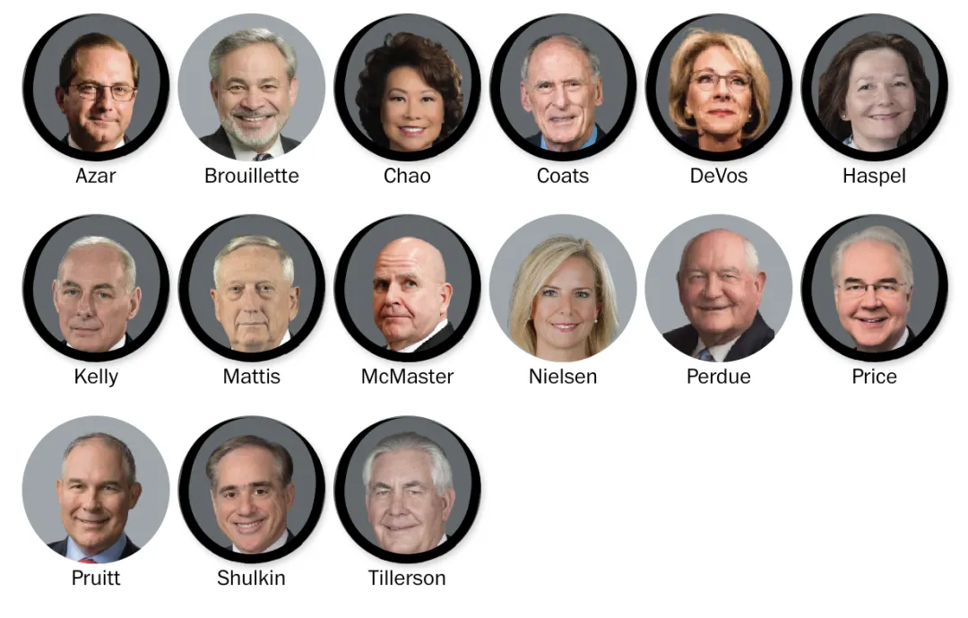 “特朗普身邊的21人”中目前擔任正式行政職務的成員 “政客”(politico)網站