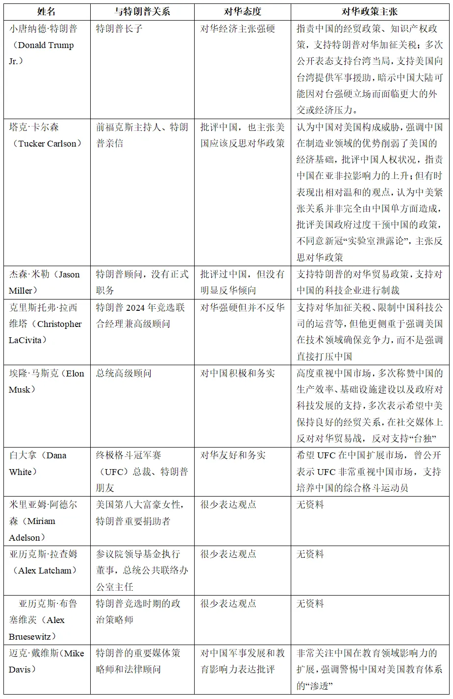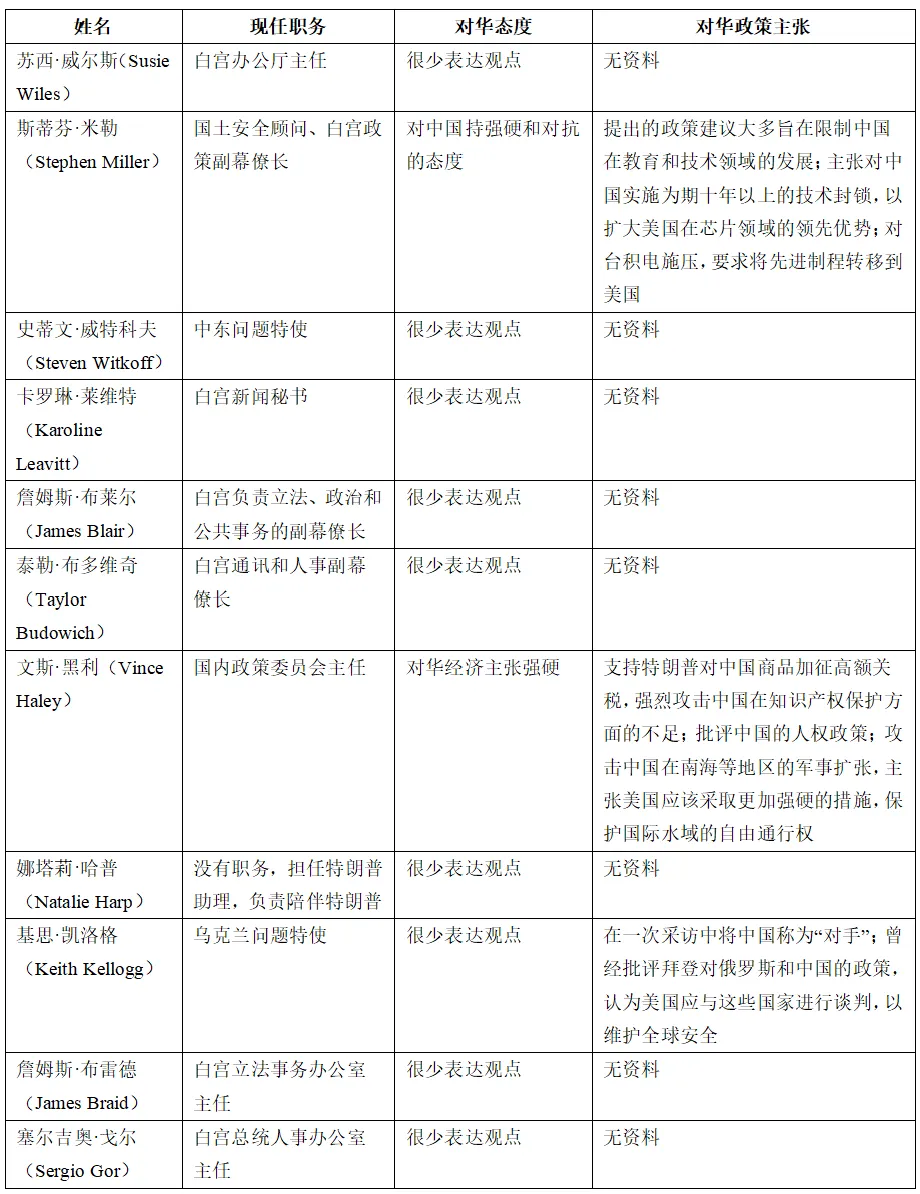 表2:“特朗普身邊的21人”中沒有擔任正式職務的成員 根據“政客”(politico)網站歸納的“特朗普身邊的21人”名單進行整理