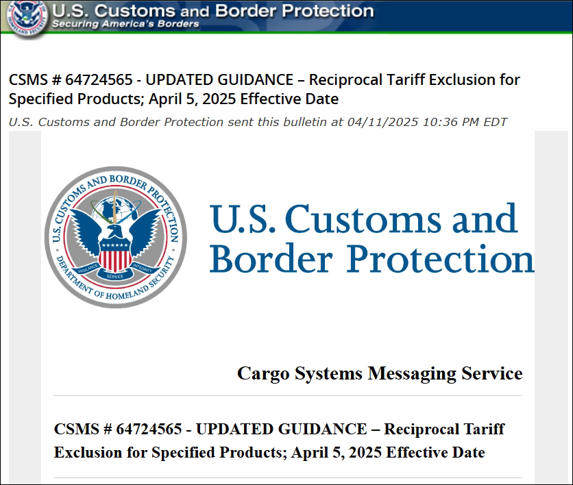 據彭博社報道,美國海關與邊境保護局(CBP)當地時間11日晚低調修改税則,豁免了智能手機、電腦等電子產品和零部件的進口税率,不受早前宣佈的所謂“對等關税”影響,且未指定國家。英國《金融時報》12日評價稱,這是特朗普對華關税有所鬆動的首個信號。