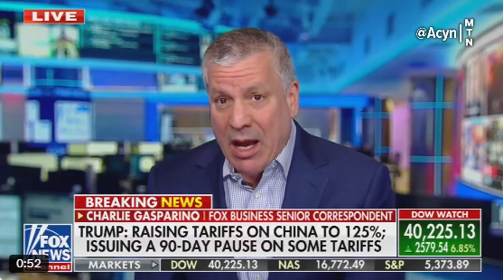 值得注意的是,就在美債遭大量拋售之際,當地時間4月9日,美國媒體人、福克斯經濟高級記者查爾斯·加斯帕裏諾(Charles Gasparino)在福克斯新聞網當天的一檔節目中認為,特朗普給出90天的暫緩期限是一次“投降行為”,並進而稱,特朗普“投降”並非因為美股大跌,而是因為債券市場利率飆升。