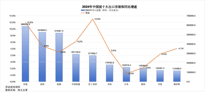 2024年,中國對東盟的出口增長了12.0%,遠超整體5.9%的增長水平