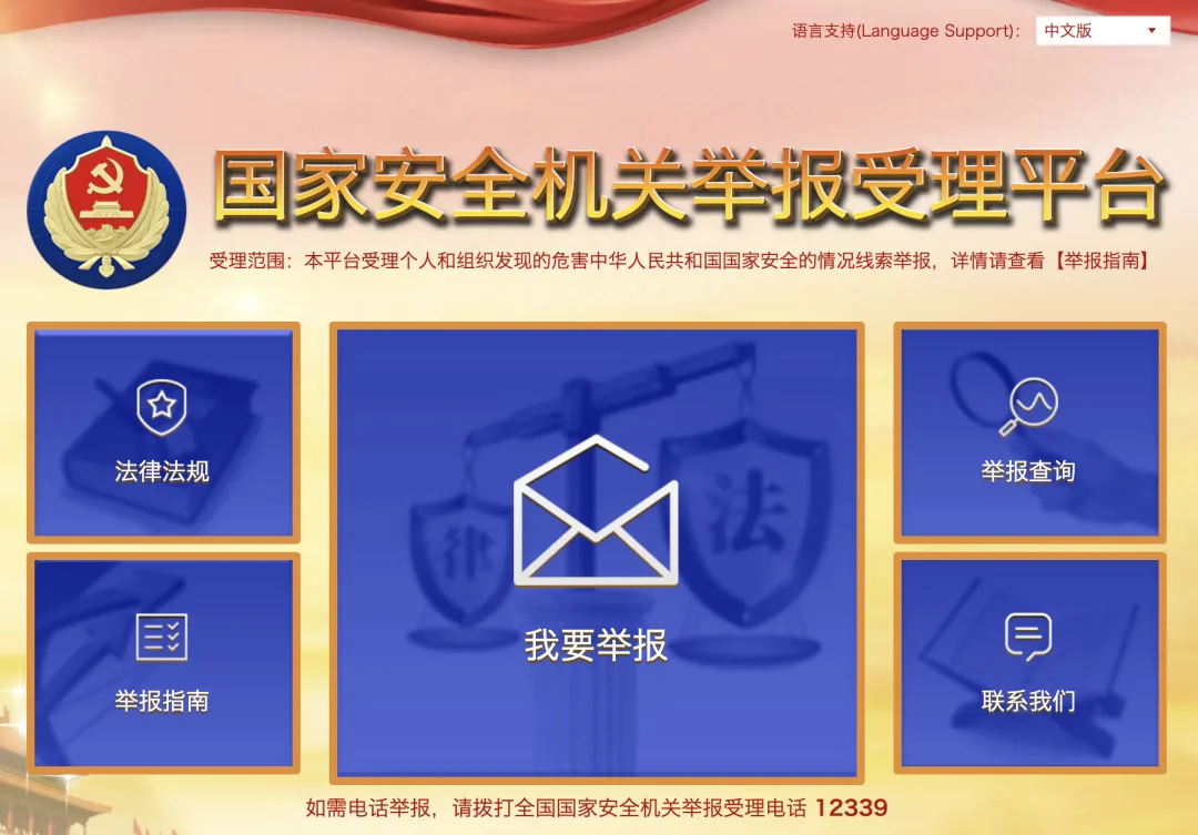 國家安全部提醒,廣大人民羣眾如發現任何危害國家安全的間諜行為,可通過12339國家安全機關舉報受理電話、網絡舉報平台和國家安全部微信公眾號舉報受理渠道或者直接向當地國家安全機關進行舉報。