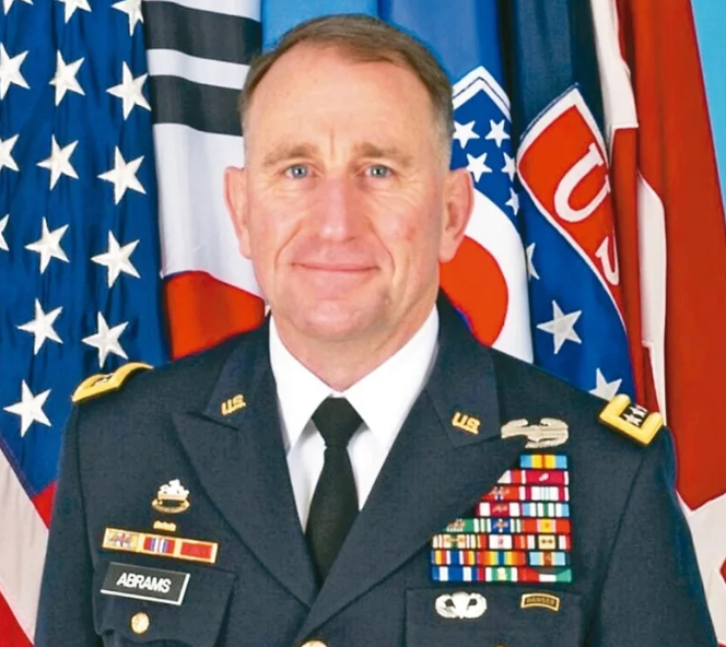 羅伯特·艾布拉姆斯是美國二戰期間著名陸軍裝甲兵名將小克雷頓·威廉斯·艾布拉姆斯(Creighton Williams Abrams, Jr.)的第三子。作為將門之後,羅伯特·艾布拉姆斯畢業於大名鼎鼎的西點軍校,隨後一直在裝甲兵系統任職。在晉升為將軍以後,羅伯特·艾布拉姆斯任駐韓美軍司令兼任所謂“聯合國軍”司令,不過,這位艾布拉姆斯沒有像其父親一樣死在任上。他在2021年7月退役。