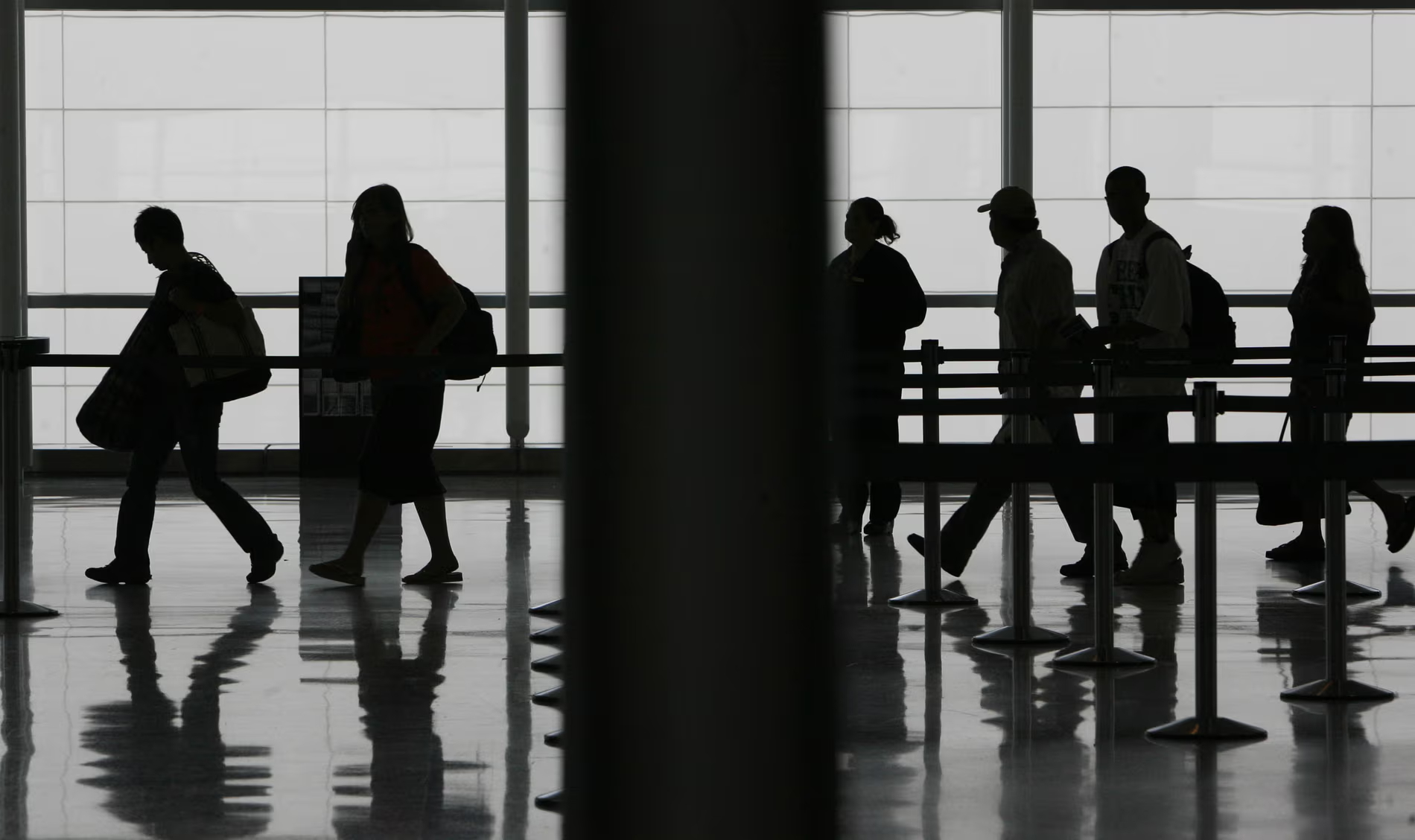 在美國休斯頓洲際機場排隊過海關的旅客 英國《衞報》