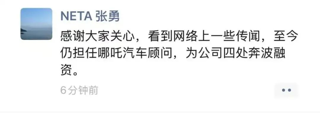 據鳳凰網消息,近日,有傳聞道哪吒汽車原CEO張勇已於離職前辦理英國簽證,目前身在英國。對此,張勇在朋友圈回應,“感謝大家關心,看到網絡上一些傳聞,至今仍擔任哪吒汽車顧問,為公司四處奔波融資。”
