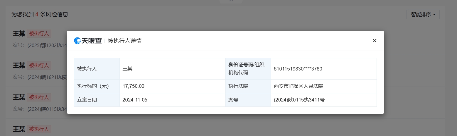 除此之外,案件流程信息顯示,王某曾因此案在2024年11月被執行1.7萬餘元。