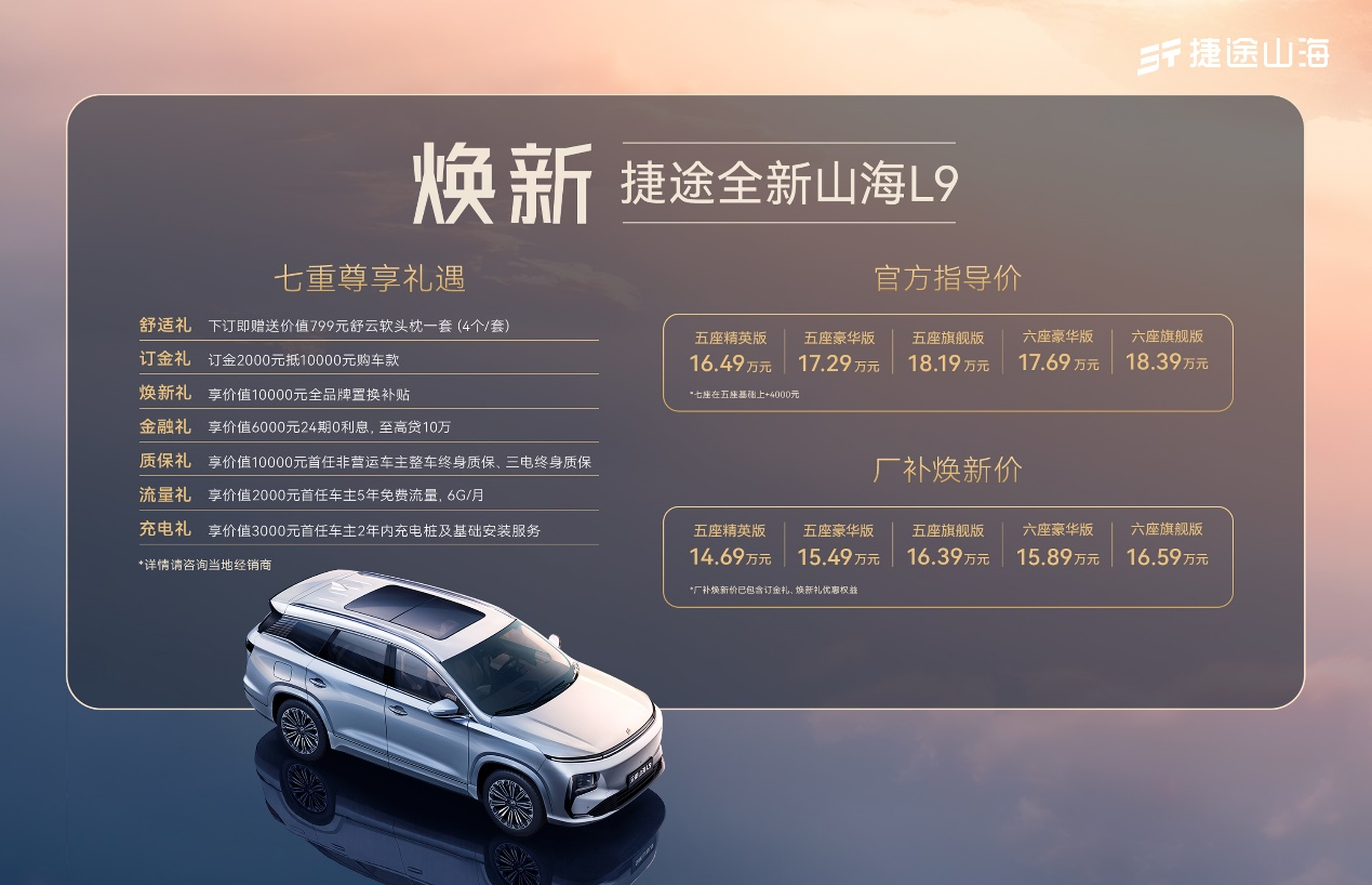 新車看點丨新增6座佈局,捷途全新山海L9不到15萬元起售