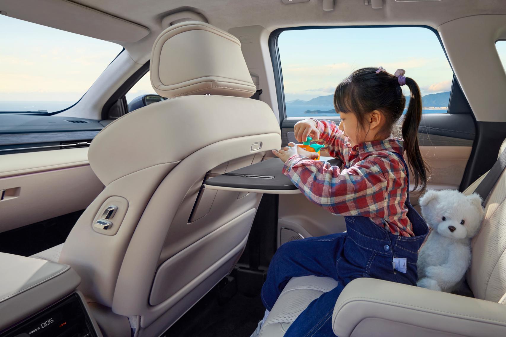 值得一提的是,全新山海L9的六座車型,副駕座椅靠背的後方配有一個摺疊小桌板,最大承重30kg,能夠為家庭用户擴展更多使用場景。