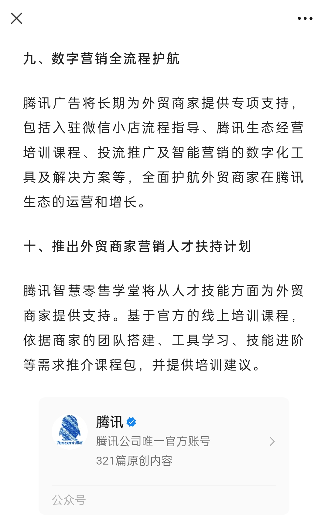 騰訊將推出“外貿新徵程助跑計劃” 騰訊官方微信公眾號