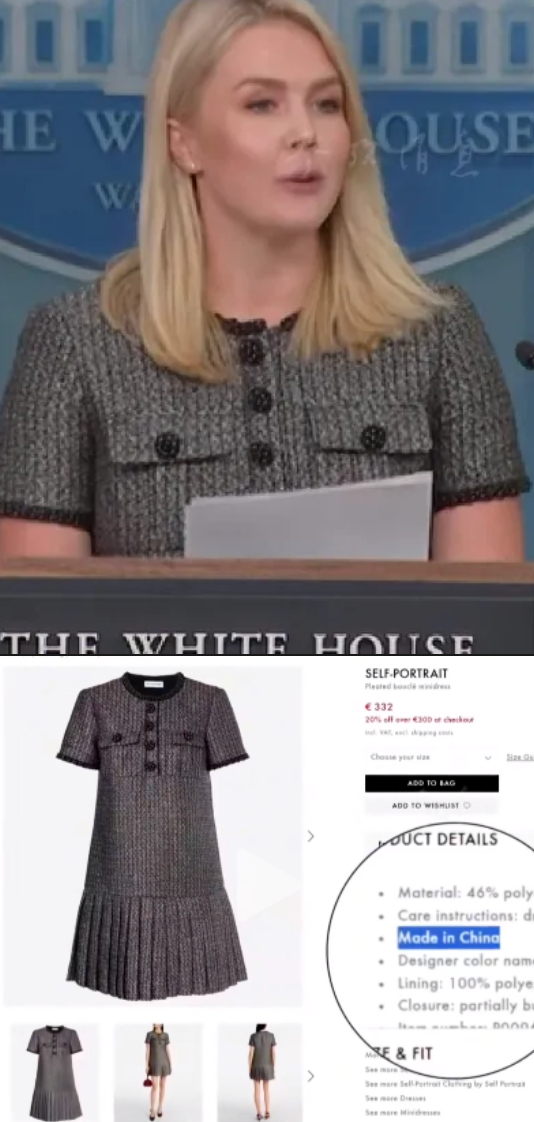 白宮發言人穿的靚衣是“中國造”?中國網友:我們廠染的