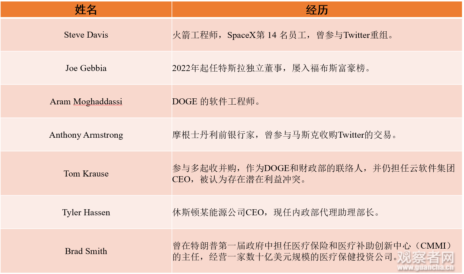 有些人曾分析馬斯克團隊講究“情懷”,“放棄個人得失,帶着情懷和良好願景來幫助改革政府”,其實稍微翻檢下核心成員履歷,便能感受出其中大有蹊蹺。