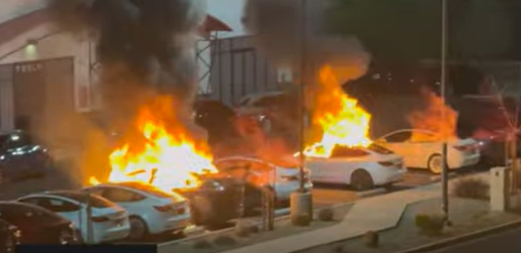 3月18日,拉斯維加斯發生特斯拉汽車遭縱火事件 視頻截圖