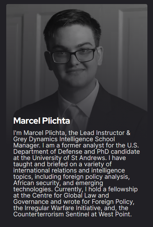值得注意的是,“灰色動力”公司在官網上自稱是一家“致力於使情報‘民主化’”的公司,並且其“首席講師”和“情報學院經理”並不避諱在個人介紹中展示他曾擔任美國國防部分析師的職業背景。