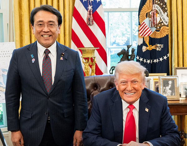 特朗普與日本經濟再生大臣赤澤亮正的合影 社交媒體