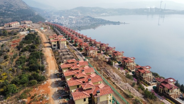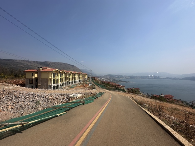 春城海岸項目現場工作人員告訴澎湃新聞,“春城海岸”項目總共分兩期開發,已有約110棟建築封頂斷水,涵蓋公寓和別墅。其中,部分住宅已達到了交付條件,目前僅差竣工驗收環節。一期項目現已開發至95%的進度,二期項目被細分為四個地塊進行開發,具體包括2-1地塊、2-2地塊、2-3地塊、2-4地塊。2-1地塊的施工許可證早在2014年就已取得,規劃建造房屋共計193棟,但目前陽宗海管委會僅准許建設27棟:對於已封頂的建築允許繼續完成收尾工作,剛達到“正負零”(即地面標高)則不得再建設。