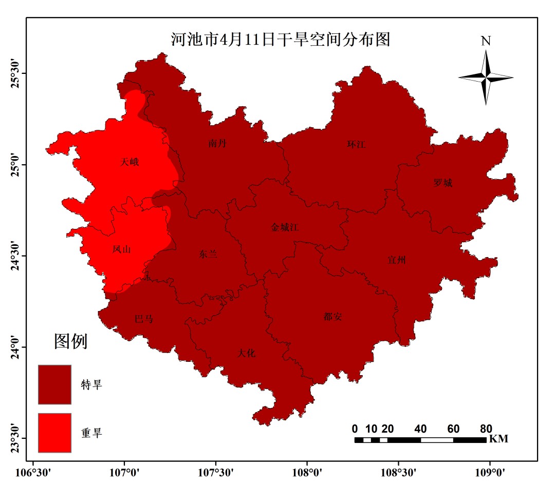 據河池融媒4月11日消息,根據氣象乾旱綜合指數監測,截至4月11日,河池市各地出現不同程度氣象乾旱,其中除天峨、鳳山出現重旱之外,包括東蘭縣在內的其餘縣(區)均出現特旱。
