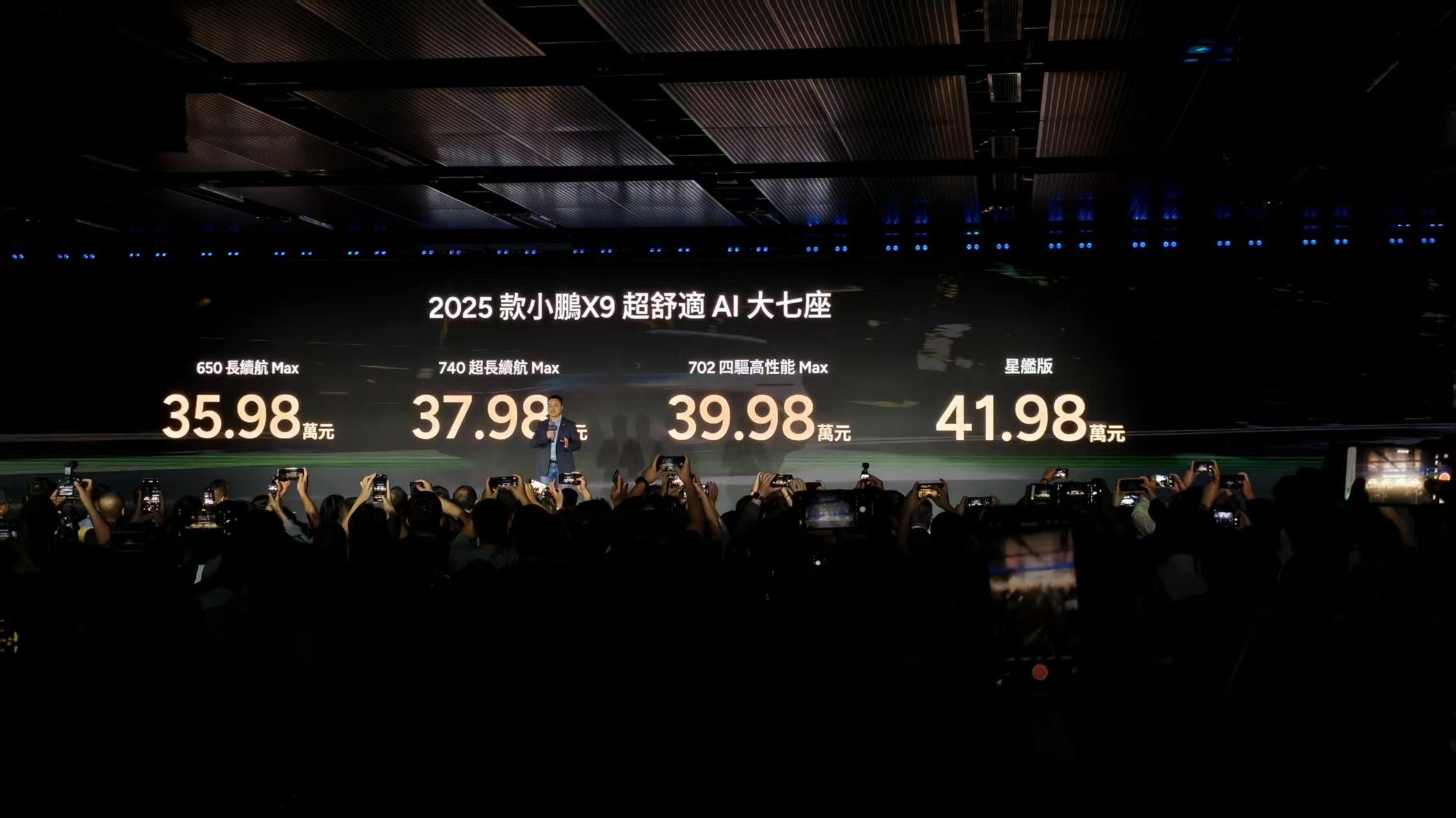 對於新車來説,2025款小鵬X9共發佈四個版本,包括650長續航Max、740超長續航Max、702四驅高性能Max以及星艦版,官方指導售價分別為35.98萬元、37.98萬元、39.98萬元以及41.98萬元。