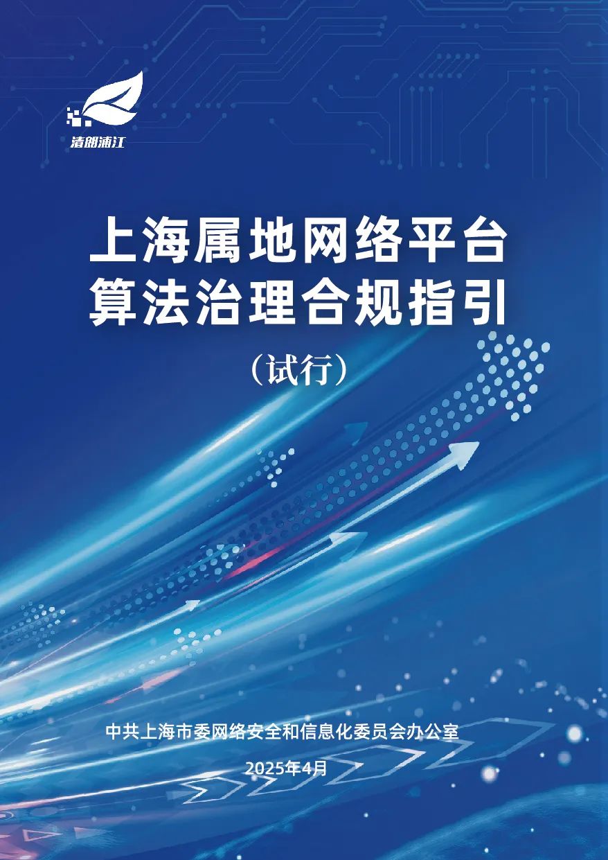 為鞏固專項治理成果,加強業務合規指導,近期上海市委網信辦結合工作實際,會同上海互聯網應急中心編寫了《上海屬地網絡平台算法治理合規指引(試行)》 ( 下稱《指引》,全文詳見以下滑動圖片 ) ,並於 2025年4月1日正式實施。