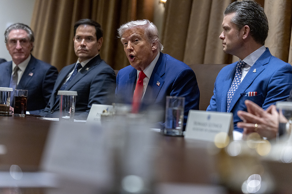 當地時間2025年4月10日,美國華盛頓,在白宮內閣會議室,美國總統特朗普在內閣會議上發表講話 視覺中國