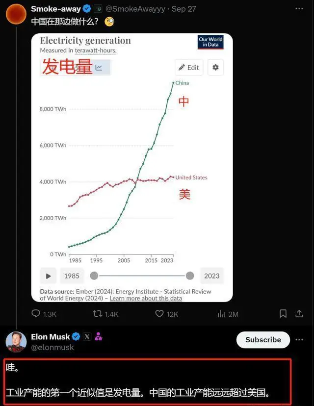 **王立華:**剛才説到美國發電量下降和美國去工業化的關係,這個很有道理。美國現代的衰落和美國的所謂去工業化是息息相關的,所以特朗普“讓美國再次偉大”的一個重要指標,就是工業化能不能回到美國。現在美國對中國打關税戰,一個主要目標也是為了讓工業製造回到中國。