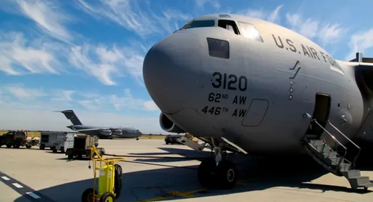 在瑪納斯機場,美軍使用大型C-17運輸機為阿富汗前線運送部隊和物資BBC