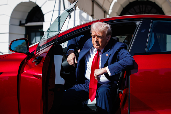3月11日,美國總統特朗普體驗一輛特斯拉汽車 視覺中國
