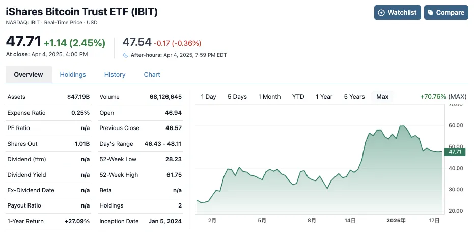 注:貝萊德比特幣信託ETF是2024年1月4日發行的開放式基金,它並不直接持有比特幣,而是配置基金公司Grayscale發行的ETF產品Grayscale Bitcoin Mini Trust(BTC),這份基金產品同樣不直接持