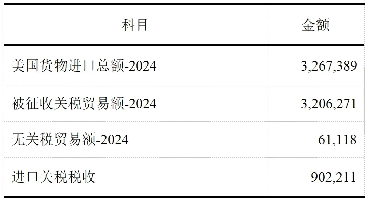表1 “對等關税”關税額估算(單位:百萬美元) 作者自制