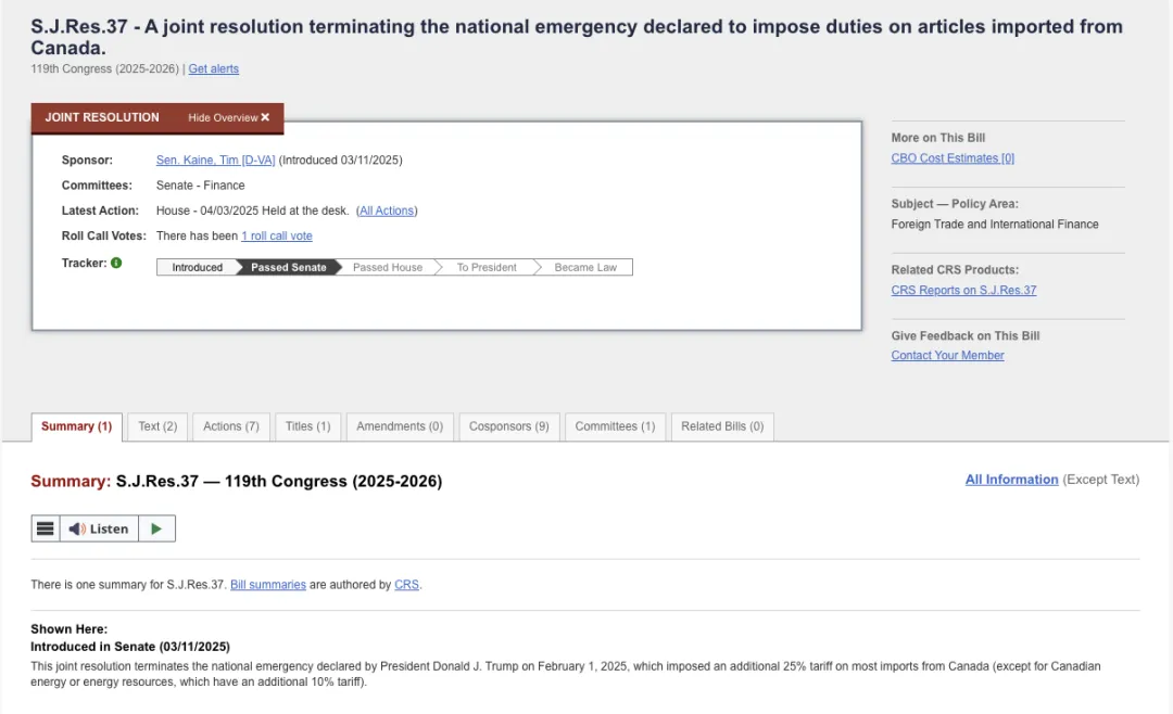 但是,這麼一分一分地徵税,實在是太慢了,中期選舉前不但不會有什麼好結果,反而可能導致共和黨在兩院輪選中失利,失去多數黨優勢。相比之下,先祭出大招,一棒子把貿易伙伴打蒙,然後誘導貿易伙伴主動獻出換取調降關税的籌碼,這樣以退為進搞錢要快得多。實際上,在祭出“對等關税”大招前,美國參議院已經否決了特朗普針對加拿大額外徵收25%關税的議案。