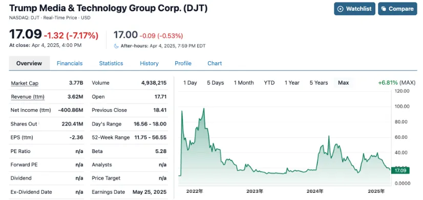 圖5 特朗普媒體科技集團(交易代碼DJT)的交易現狀
