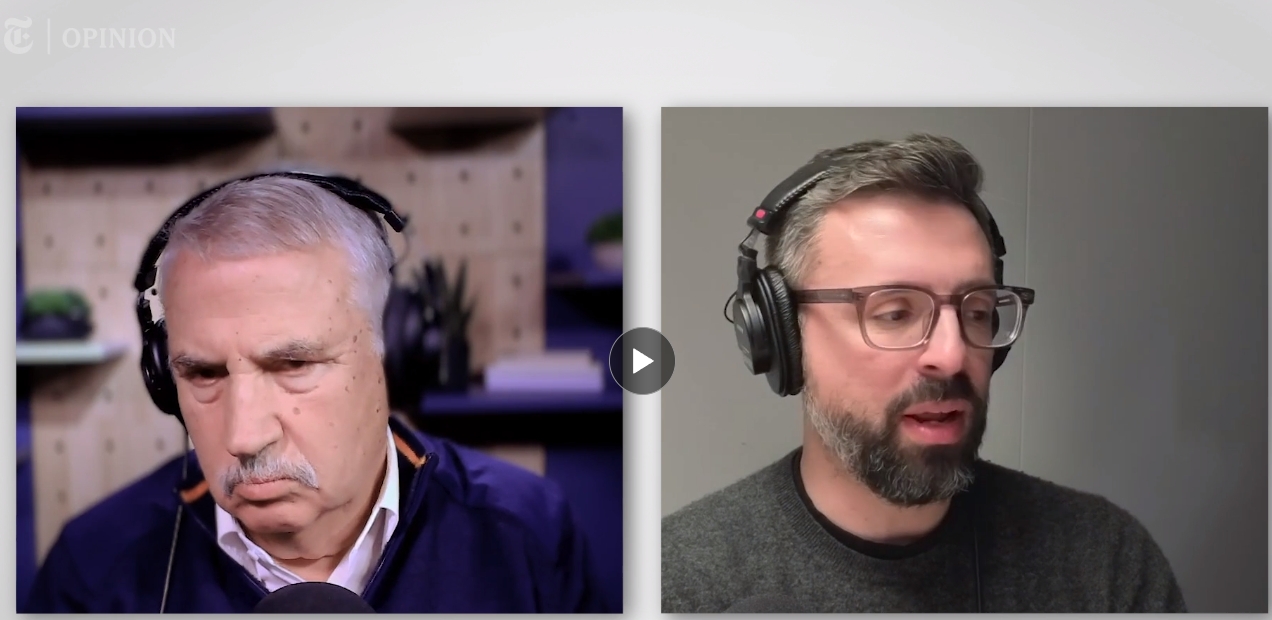 美國知名記者、播客主持人埃茲拉·克萊因對話紐約時報專欄作者托馬斯·弗裏德曼視頻截圖