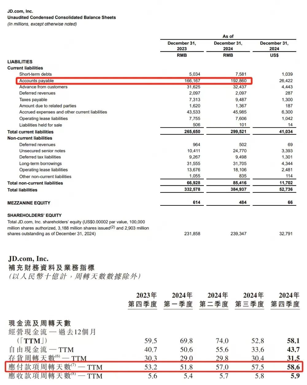 (據某平台財報,2024年該平台應付商家貨款總額超過了1900億,平均賬期為58.6天,相較2023年均有增長。)