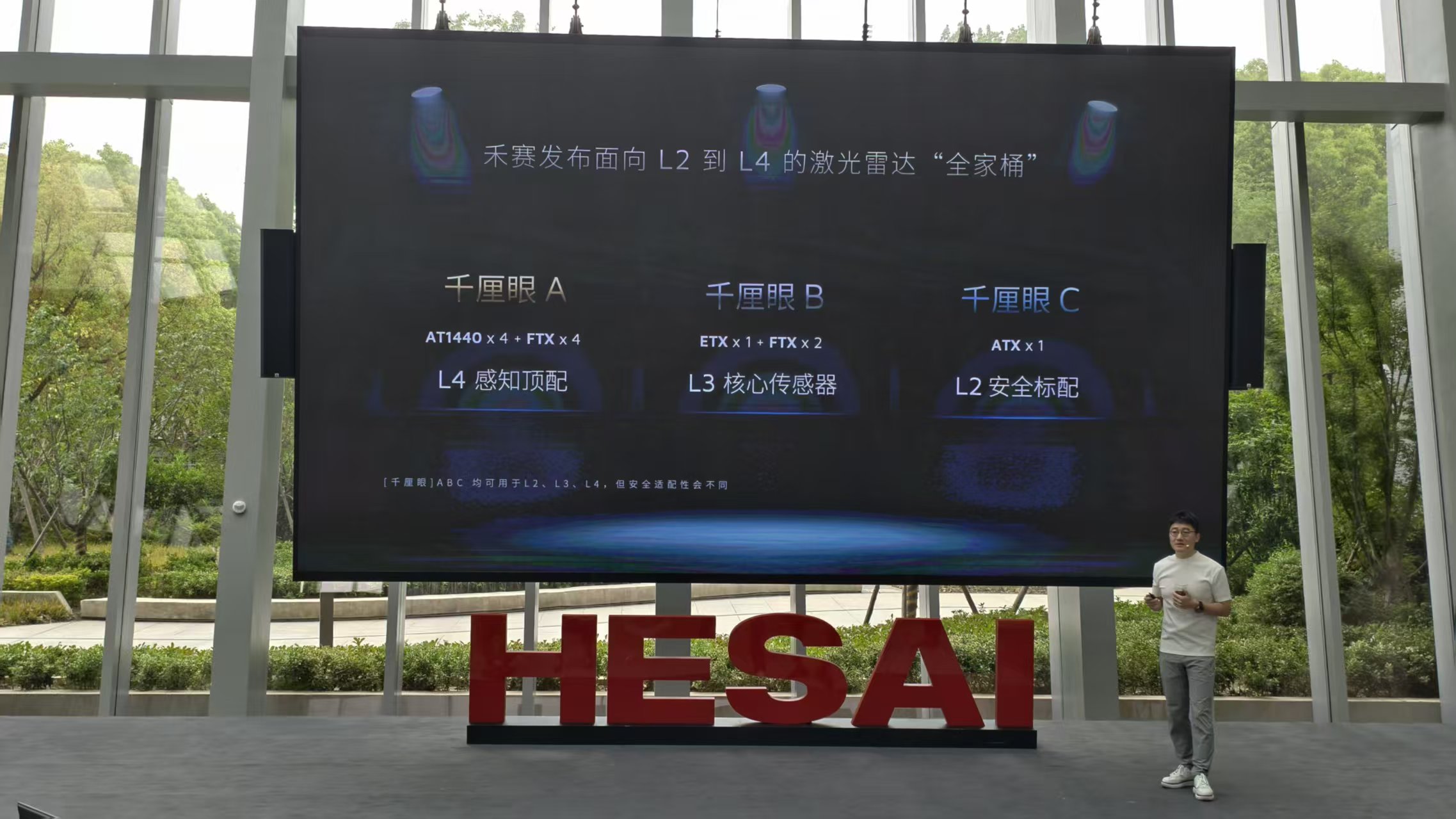 根據禾賽科技的介紹,“千釐眼”諧音“千里眼”,寓意其擁有極遠的感知距離,同時感知精度可達釐米級別。“千釐眼”共有三種解決方案——“千釐眼 A”“千釐眼 B”“千釐眼 C”,分別為L4級及以上自動駕駛系統、L3級有條件自動駕駛、L2級輔助駕駛提供不同的激光雷達組合。