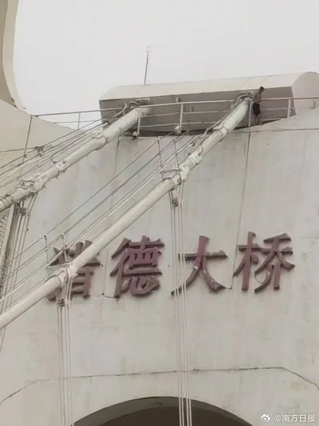 男子早高峯爬上獵德大橋頂部,廣州交警回應