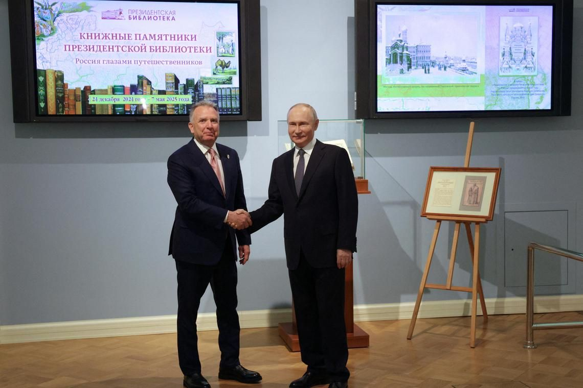 4月11日,俄羅斯總統普京(右)在聖彼得堡總統圖書館迎接美國總統特使威特科夫。路透社