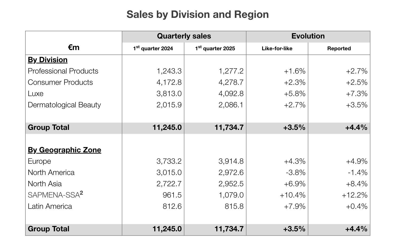 歐萊雅集團2025年一季度財報:銷售額增長4.4%,歐洲市場表現亮眼