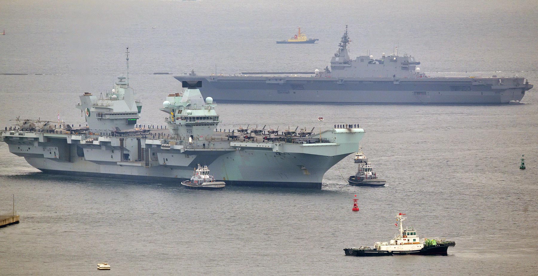 2021年9月4日,抵達日本訪問的“伊麗莎白女王”號航母在進入橫須賀軍港時與日本海上自衞隊直升機驅逐艦DDH-184“出雲”號擦肩而過