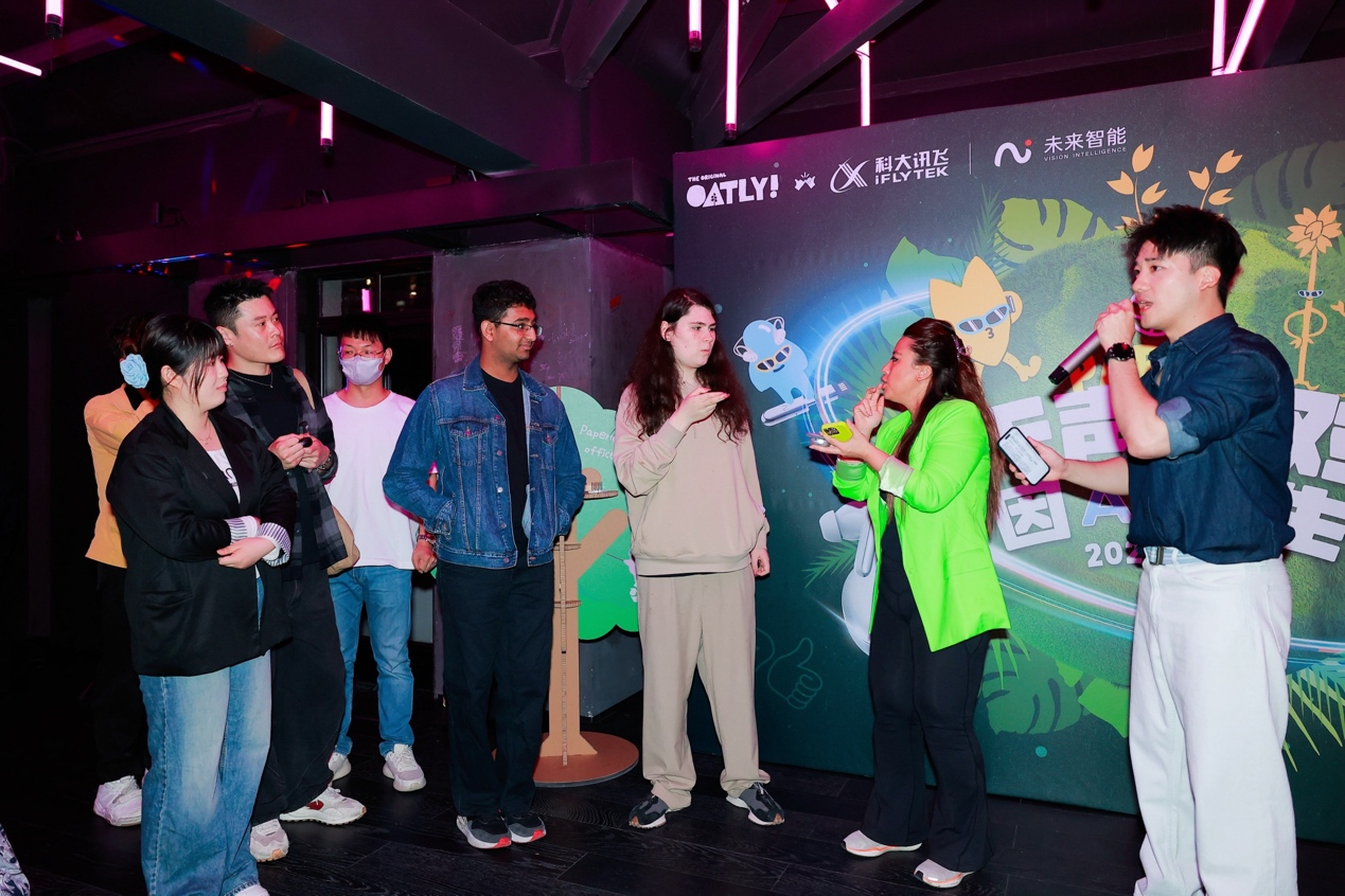 夜幕降臨,未來智能與OATLY、BassBath聯合舉辦的“無聲派對”進一步模糊了科技、環保與人文的邊界。AI技術賦能下無聲的即時交互讓公眾深刻感受到聽障羣體的溝通日常,音樂與光影交織的“無聲烏托邦”中,科技與自然、個體與社羣的共振悄然發生。