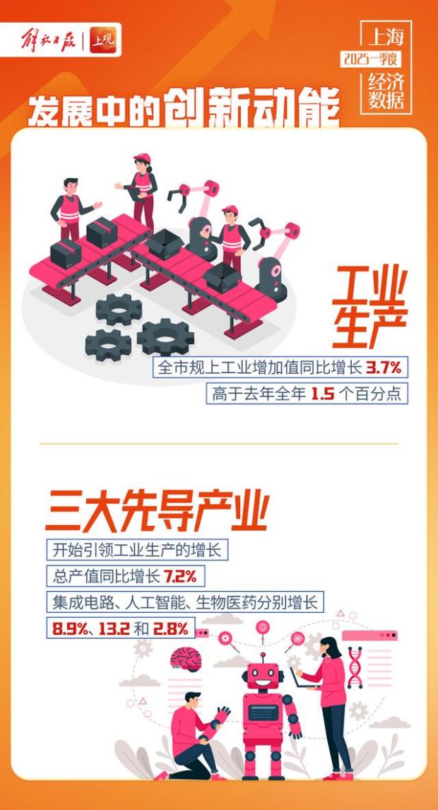 GDP同比增長5.1%!圖解上海一季度經濟數據 guancha 2025-04-23 設計 黃海昕 王晨 文案 戚穎璞 張楊 吳丹璐 原標題:《GDP同比增長5.1%!圖解上海一季度經濟數據》 欄目主編:張楊 文字編輯:戚穎璞 來源:作者:上觀視覺 上觀財經