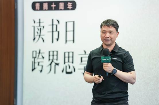 活動期間,青騰歷屆校友來到讀書日,分享新知的同時也互贈書籍。作為校友代表,姚記科技董事長,青騰產業二期、三期校友姚朔斌共享姚記科技藉助IP賦能消費的經驗:“IP是品牌的進階形態,是把品牌從理性符號升級為情感內容、靈魂共鳴的必經之路。”另一位校友代表,迪阿股份CEO、創始人,青騰文創三期、全球化創新營三期校友盧依雯提到其創業理念時強調:“企業的存在本質是解決社會問題而非追逐利潤,任何企業的核心價值都應基於對世界的深刻理解。”