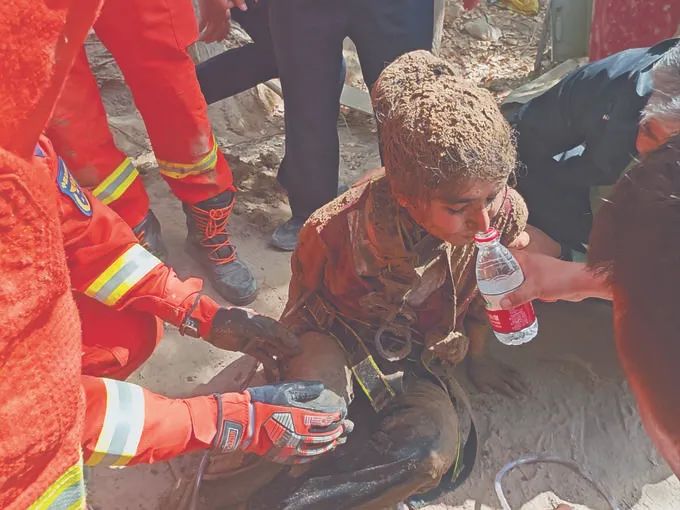 升井後的布帕太姆·阿布杜喀迪爾,也因缺氧癱坐在地上,二人迅速被送往醫院救治。