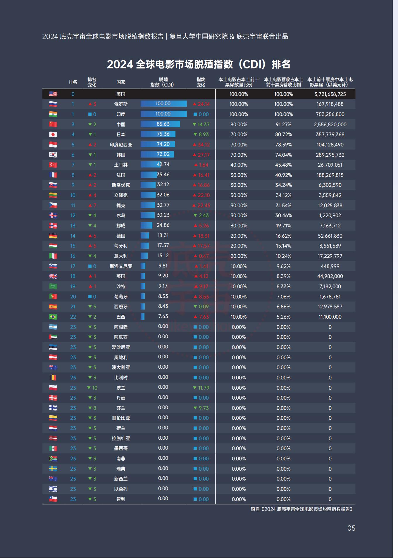 **編者按:**4月24日,底殼宇宙發佈了《2024全球電影市場脱殖指數報告》,這是底殼連續第三年圍繞“脱殖”概念觀察全球電影市場,今年也是該報告首次聯合復旦大學中國研究院發佈。