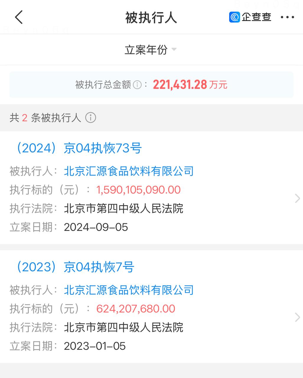 2017年,匯源果汁的債務規模達到了114億元,同時公司資產僅為45億元,嚴重資不抵債。2018年4月,匯源果汁更是因一筆超40億的違規貸款停牌,並在三年後的2021年1月被取消上市地位,退市時市值僅為54億港幣。2022年6月,匯源果汁被法院裁定進入重整程序,同年獲批重整。