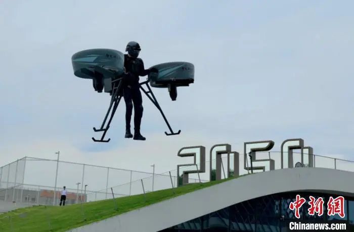 全球首款三涵道穿戴式單人飛行器在杭州成功首飛