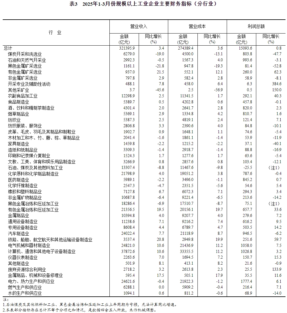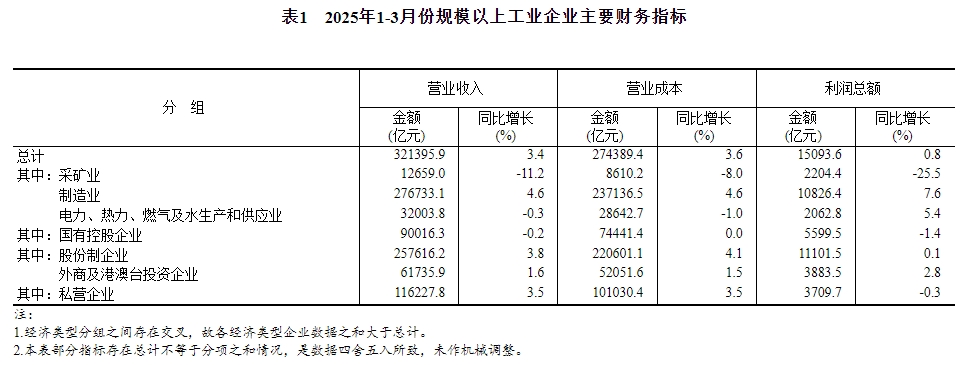 一季度規模以上工業企業利潤由降轉增——國家統計局工業司統計師於衞寧解讀2025年1—3月份工業企業利潤數據
