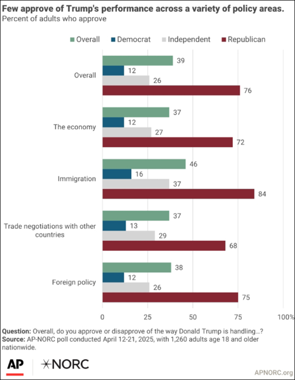 只有極少數受訪者認同特朗普的一系列政策。 美聯社製圖